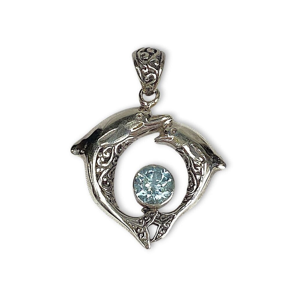 Balinese Dolphin Pendant - Topaz & Sterline Silver