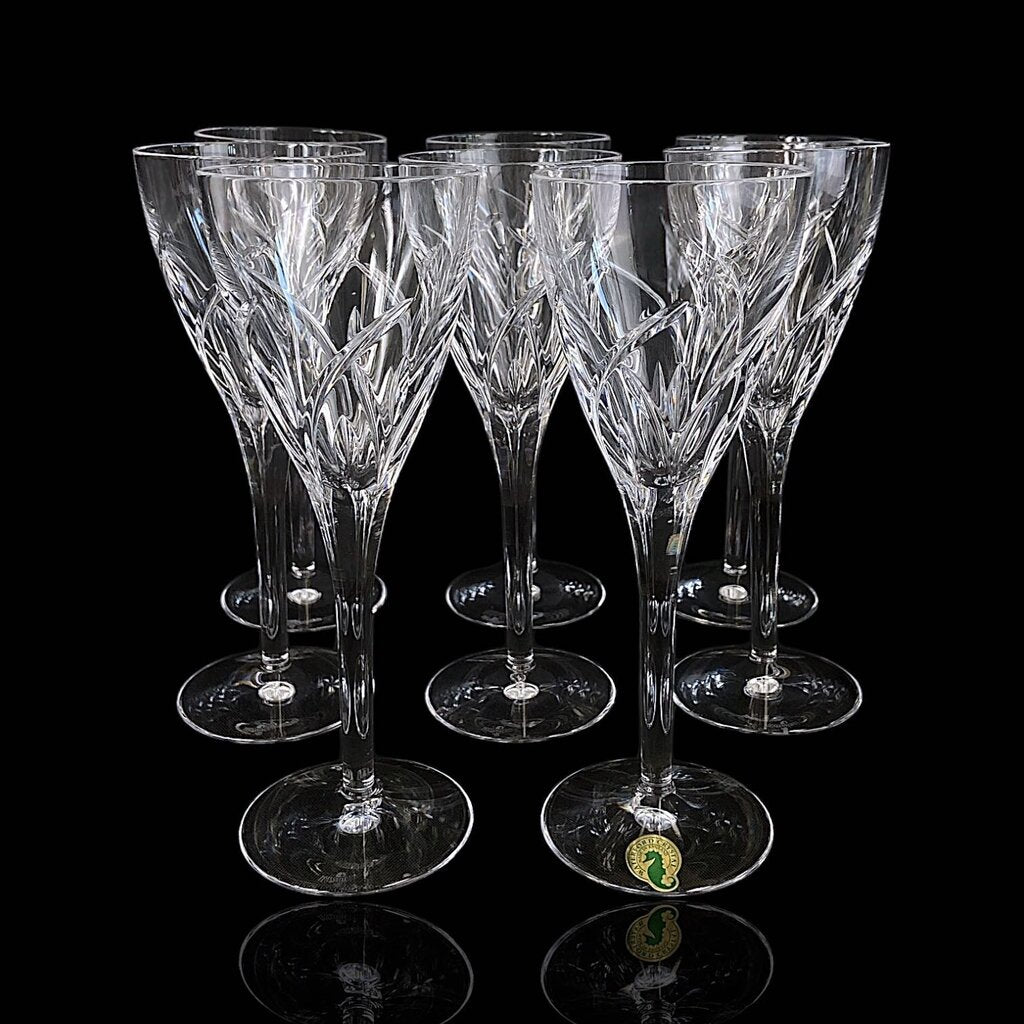 Set of 8 Merrill Pattern Crystal Wine Goblets