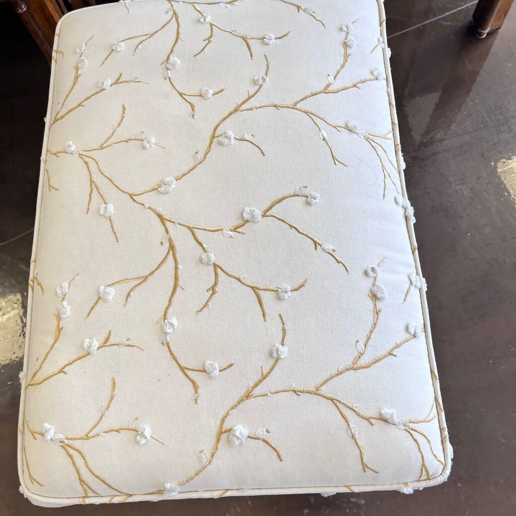 Condition Notes: Previously owned. This versatile piece has an Asian bamboo style flair that will add a touch of whimsy to your space. The stools fit neatly under the console for extra seating and are upholstered in a textured fabric. Great in smaller spaces where more seating may be needed. Overall good condition.