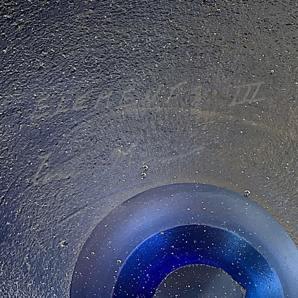 Condition Notes: "Elements III" showcases a captivating blue frosted glass vase elegantly positioned above a collection of intricately crafted blown glass elements. This piece is not just a sculpture; it's a testament to artistry and design. Excellent previously owned condition.