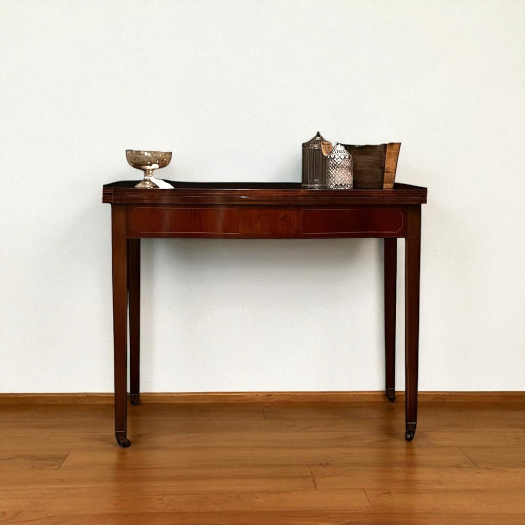 Condition Notes: Previously owned. This unique and versatile table will add elegance and functionality to your home. The top slides back and flips open to create a larger surface space. There are 4 leaves to add to make it larger for more guests. Overall good condition.