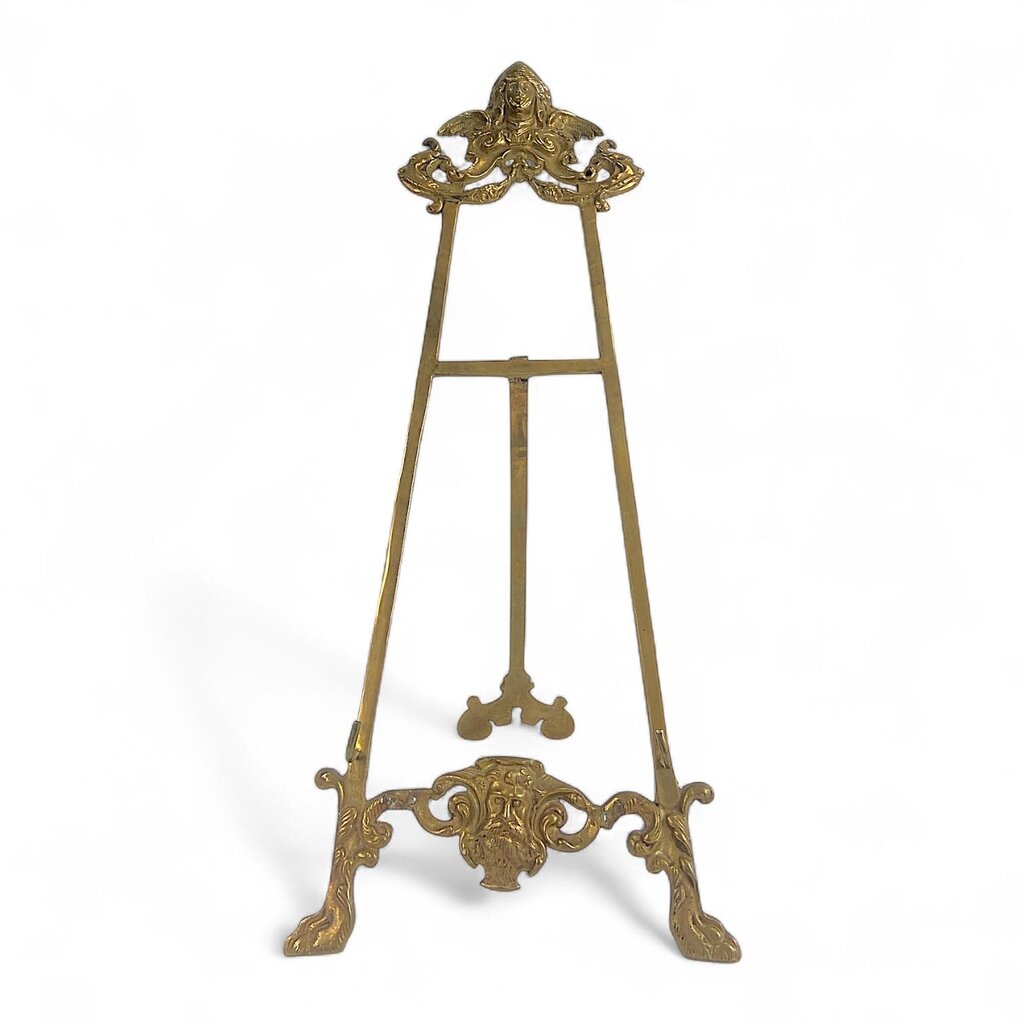 Condition Notes: This Victorian-style picture easel includes two angel face accents. Its size is suitable for displaying small, framed art or pictures on a tabletop. Excellent previously owned condition.