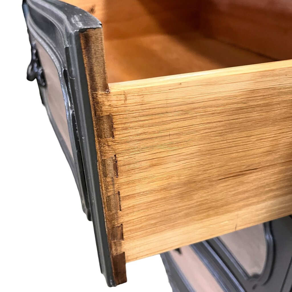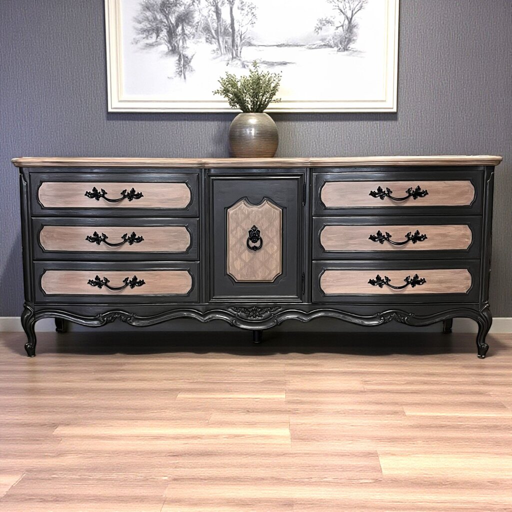 Condition Notes; Previously owned. This gorgeous dresser has nine spacious drawers with 3 hidden. The elegant hardware adds a touch of sophistication and matches the style beautifully. Overall excellent condition.