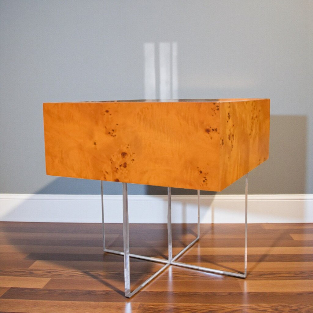 Brand New Item from Commercial Consignor \ floor pieces \ minor imperfections, scratches or wear otherwise BRAND NEW, Blending natural elegance with modern design, this Butler Specialty Company Corsica square side table features a stunning wood grain finish on top and sleek, transparent acrylic legs that create a floating effect. The combination of materials brings warmth and sophistication to any room, making it a statement piece without overwhelming your space. Perfect for showcasing decorative accents or serving as a functional surface, this table is the ideal blend of form and function.