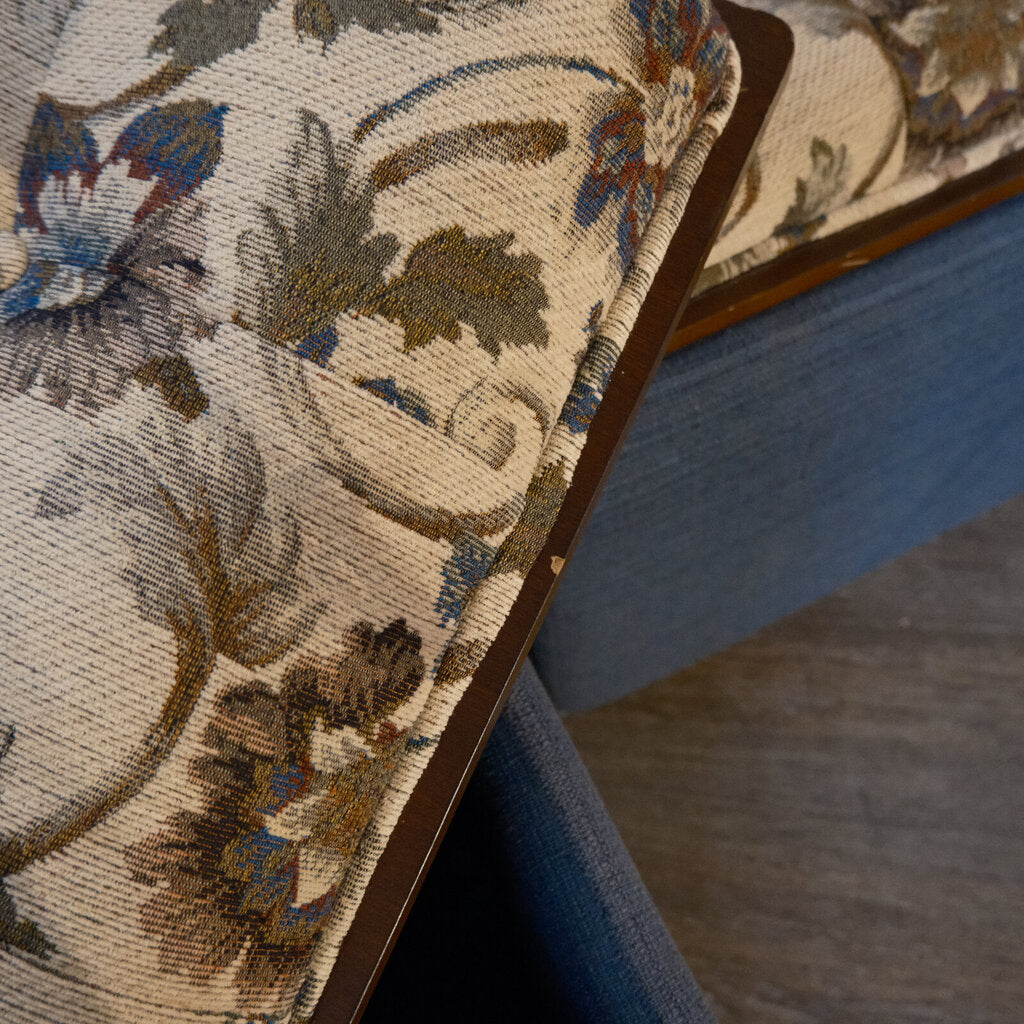 Condition Notes - Tufted floral upholstered top, flippable to a wooden surface
