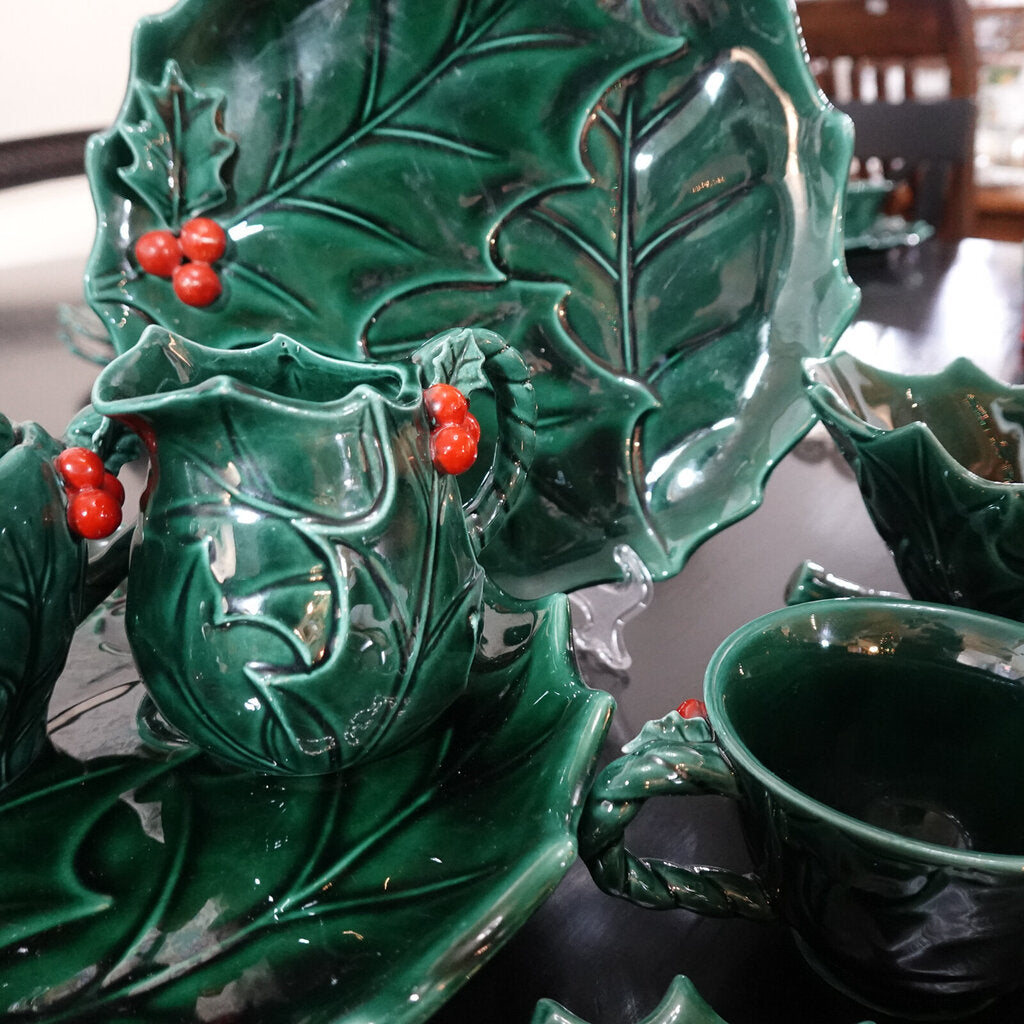 Condition Notes: Set include 11 Plates and Cups, Creamer & Sugar, Sleigh, 2 Spoon Rests, In, Previously Owned Condition
