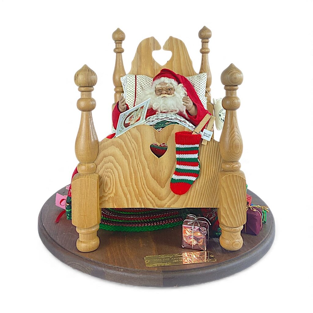 Condition Notes: This limited-edition scene shows Santa Claus resting in bed after delivering Christmas presents. He is surrounded by baked goods and is reading a book titled "There Is a Santa Claus." Good previously owned condition.
