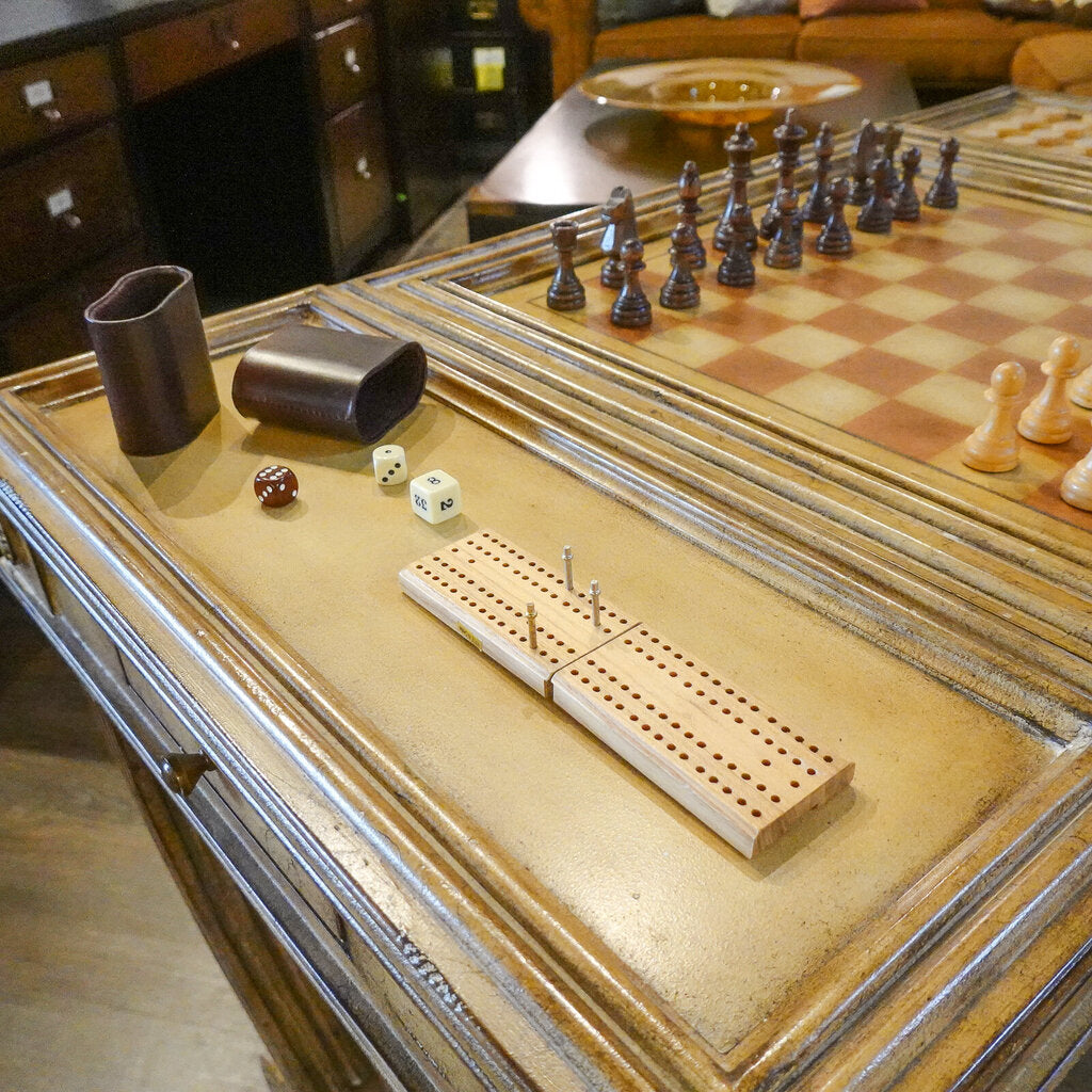 Condition Notes - Overall Good Previously Owned Condition, chipping and wear to surface coating, features flip top to reveal game board or use as ordinary table, game pieces included