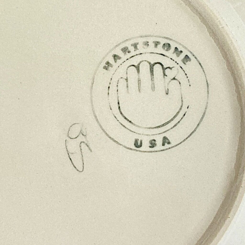 Condition Notes: This stoneware set contains place settings for eight people. It includes one round serving plate, one salt shaker, one pepper shaker, eight dinner plates, eight salad/dessert plates, eight soup bowls, and eight mugs. Each piece is a Hartstone design and features the Autumn's Edge pattern. All items are lead-free and are oven, microwave, and dishwasher safe. Excellent previously owned condition.