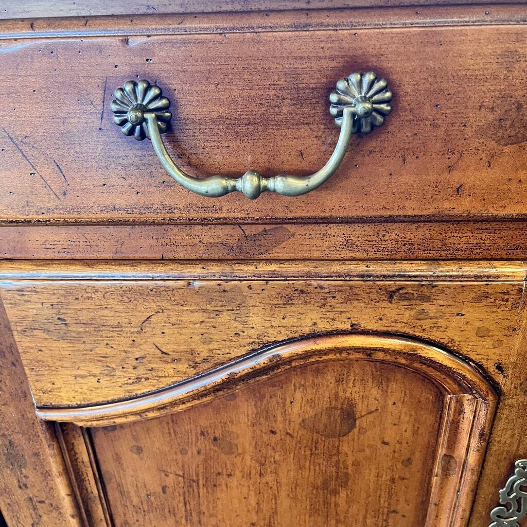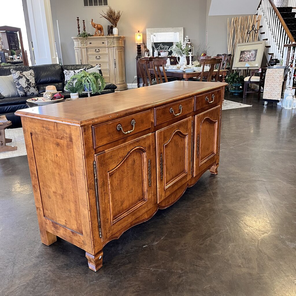 Condition Notes: Previously owned. This traditional buffet features 3 drawers and 3 cabinets all with ample storage for your dining needs. Chip on one leg. Overall good condition.
