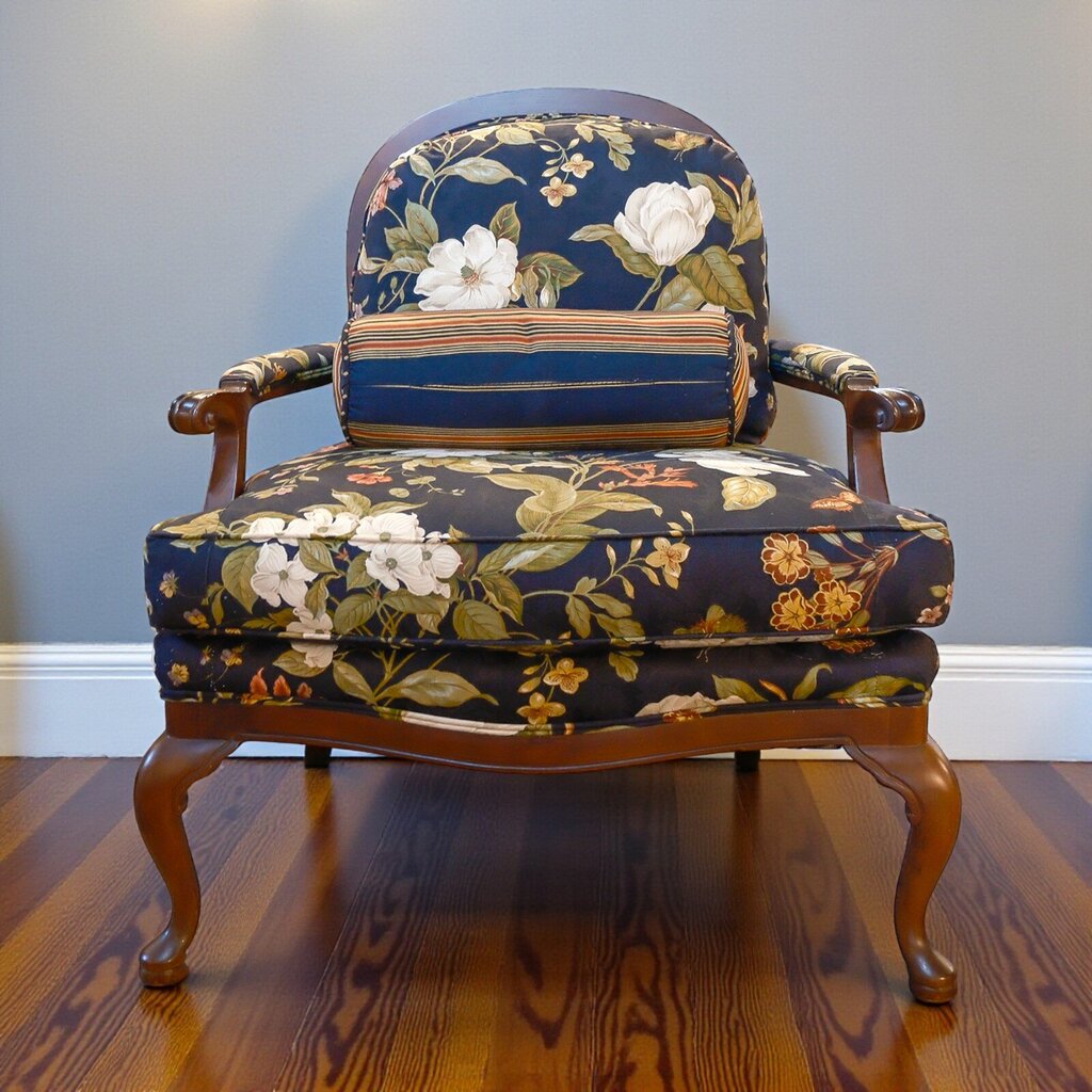 Condition Notes - Good Previously Owned Condition, stunning custom upholstry with coordinating bolster pillow, super classy and comfortable