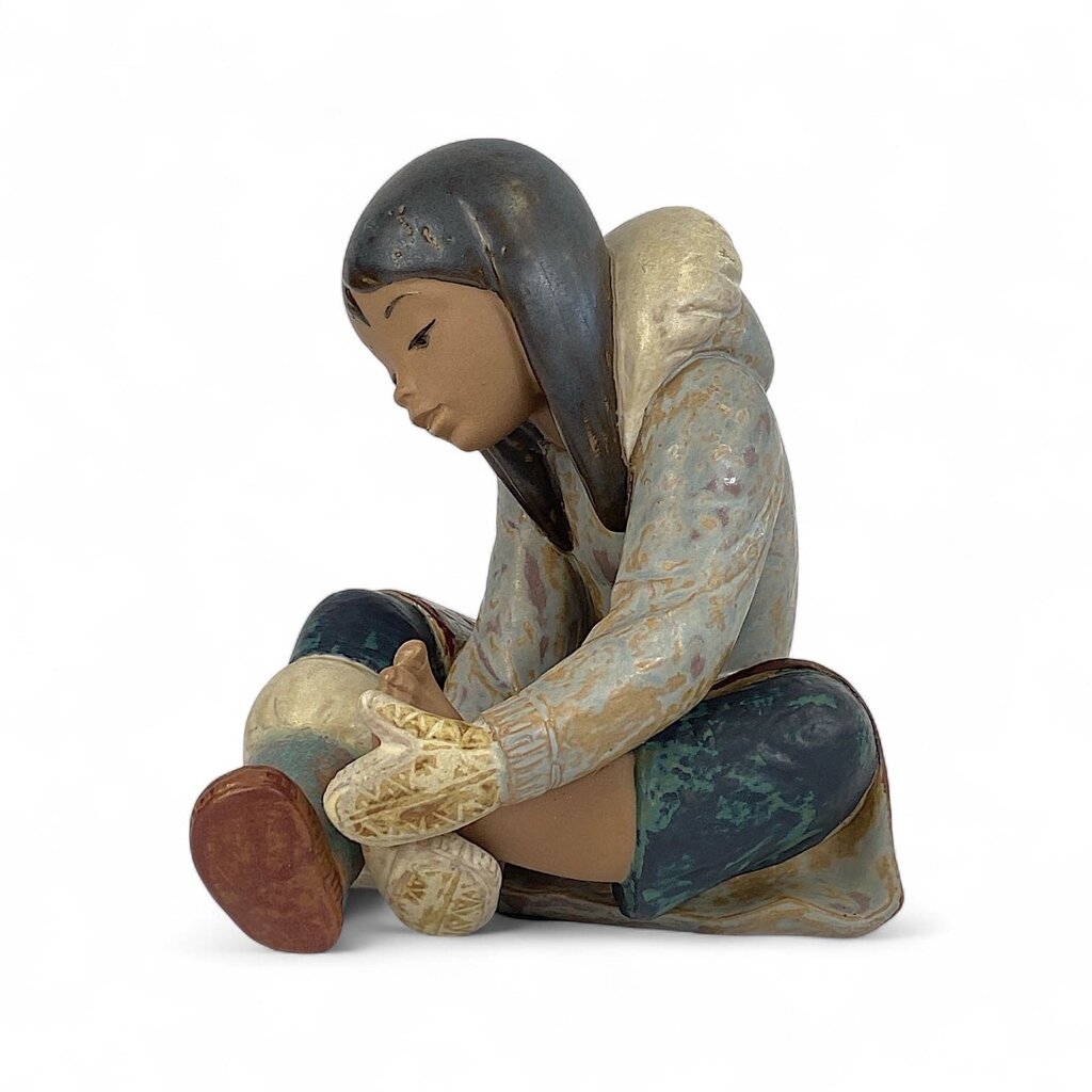 Condition Notes: This collectible figurine depicts a female Eskimo warming her feet, likely cold from the snowy climate. Lladro figurines are highly sought after and are typically made of porcelain, often showcasing people engaged in various activities, such as flower picking, and presented in different contexts. However, this specific Lladro is not crafted from porcelain; it is a carefully painted and glazed ceramic piece. Excellent previously owned condition.
