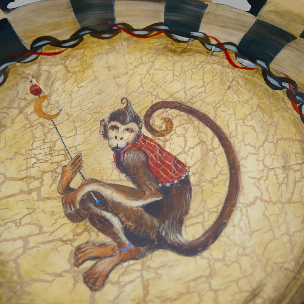 Condition Notes - Good previously Owned Condition, Paul Munro, a Chicago-based artist, decoupage (repurposed images) and hand-painted details., Munro draws inspiration from vintage wooden toys and items found in his grandparents' attic, giving the pieces a nostalgic, whimsical feel.