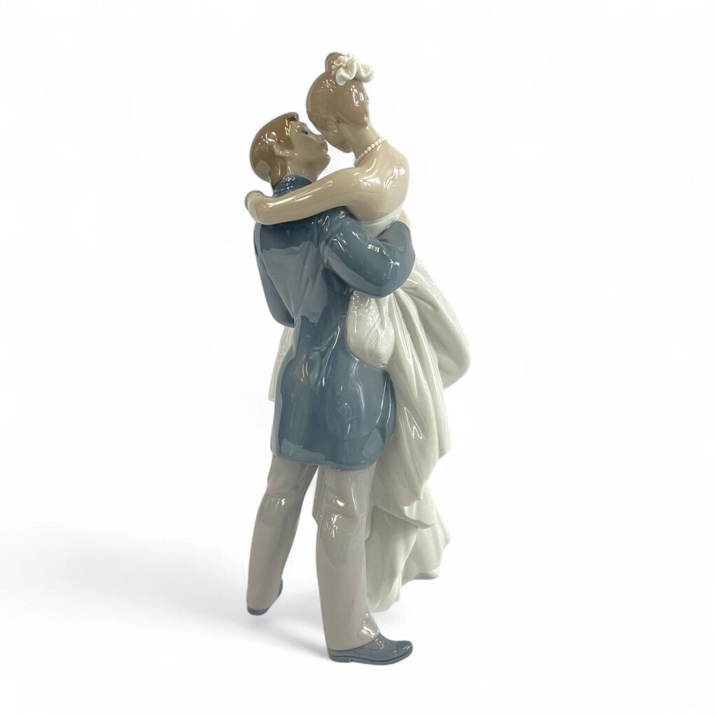 Condition Notes: This collectible figurine depicts a groom carrying his bride on their wedding day. Lladro figurines are highly sought after and are typically made of porcelain, often showcasing people engaged in various activities, such as flower picking, and presented in different contexts. Excellent previously owned condition.