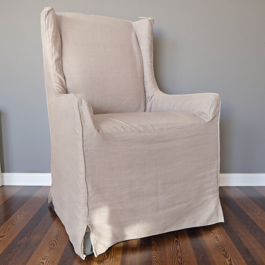 Condition Notes: In good very good previously owned condition. This is a Belgian-inspired host chair with slim architectural lines and short wings. Tall saber legs accentuate its clean, simple lines.