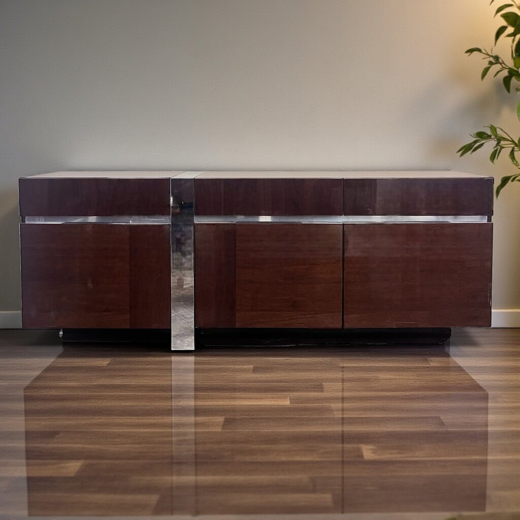Condition Notes: Previously owned. Contemporary and timeless. This sideboard has mirrored accents for a bold contemporary look. There's plenty of storage with 3 drawers and large cabinets. Overall excellent condition.