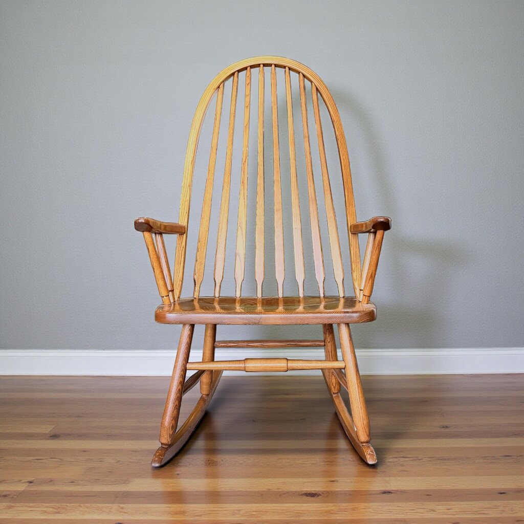 Condition notes: Previously owned. This piece offers both comfort and quality, making it a perfect addition to any home. Designed in the timeless Windsor style it features a bow design with wedged spindles and a wide contoured seat. Overall great condition.
