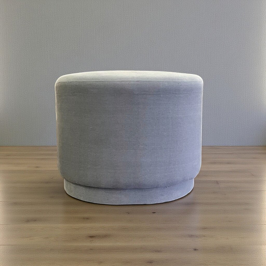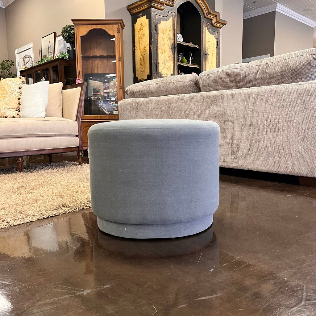Condition Notes: Previously owned. Sit back, relax, and out your feet up with this beautiful ottoman. With a unique oval shape and light dusty blue color this iece will make a perfect accent for any space in your home. Slight stain om top overall good condition.
