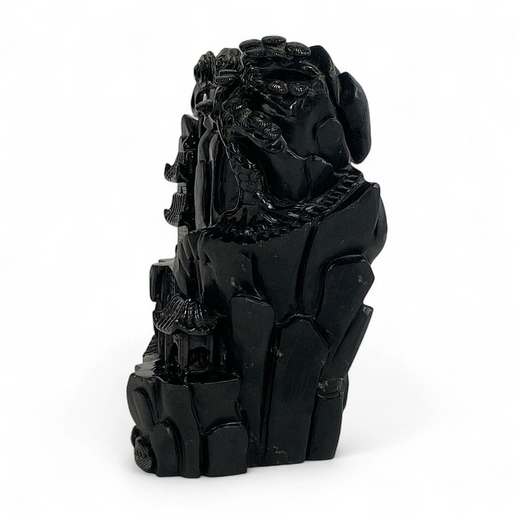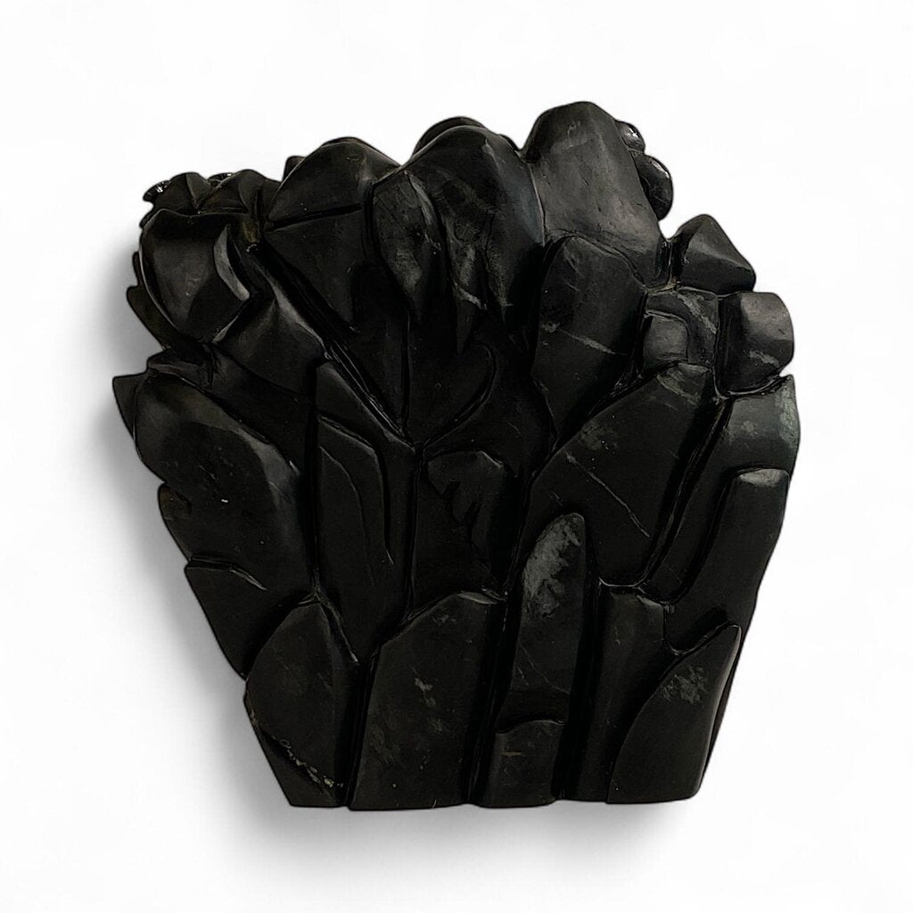 Condition Notes: This intricately carved stone sculpture depicts a wall adorned with trees and pagodas. It is heavy due to its carefully carved stone material. Excellent previously owned condition.
